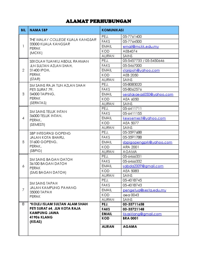 Sekolah Menengah Sains Bagan Datoh English. 056466331 Nombor Faks. Sebaya ngn SM Sains Tapah SESTA.